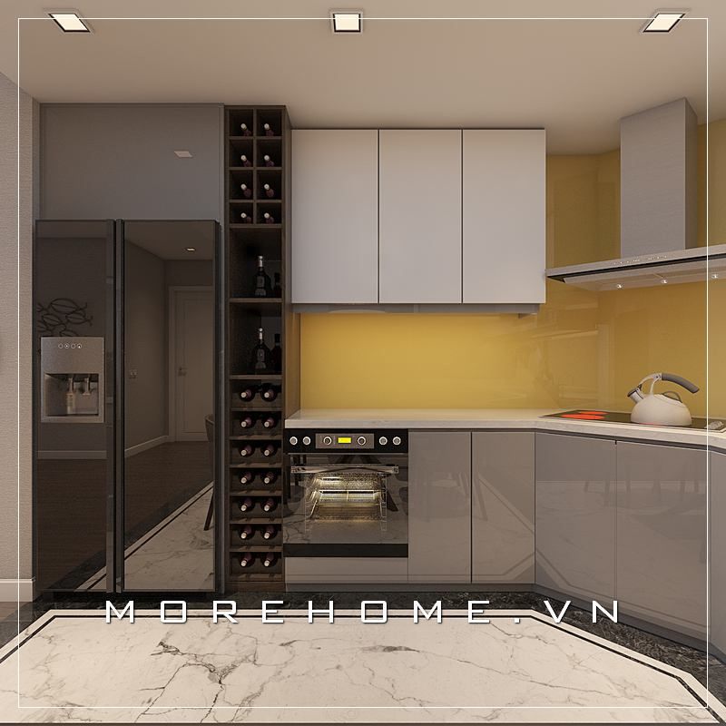 Thiết kế nội thất phòng bếp chung cư hiện đại, đơn giản và tiện nghi