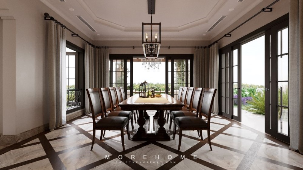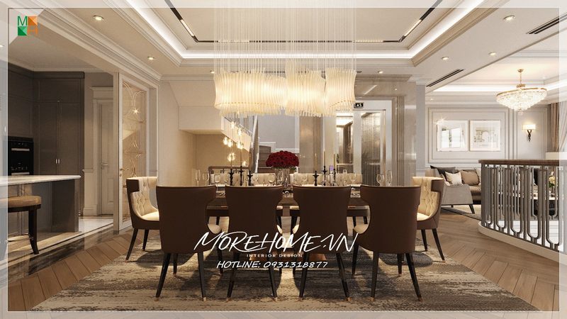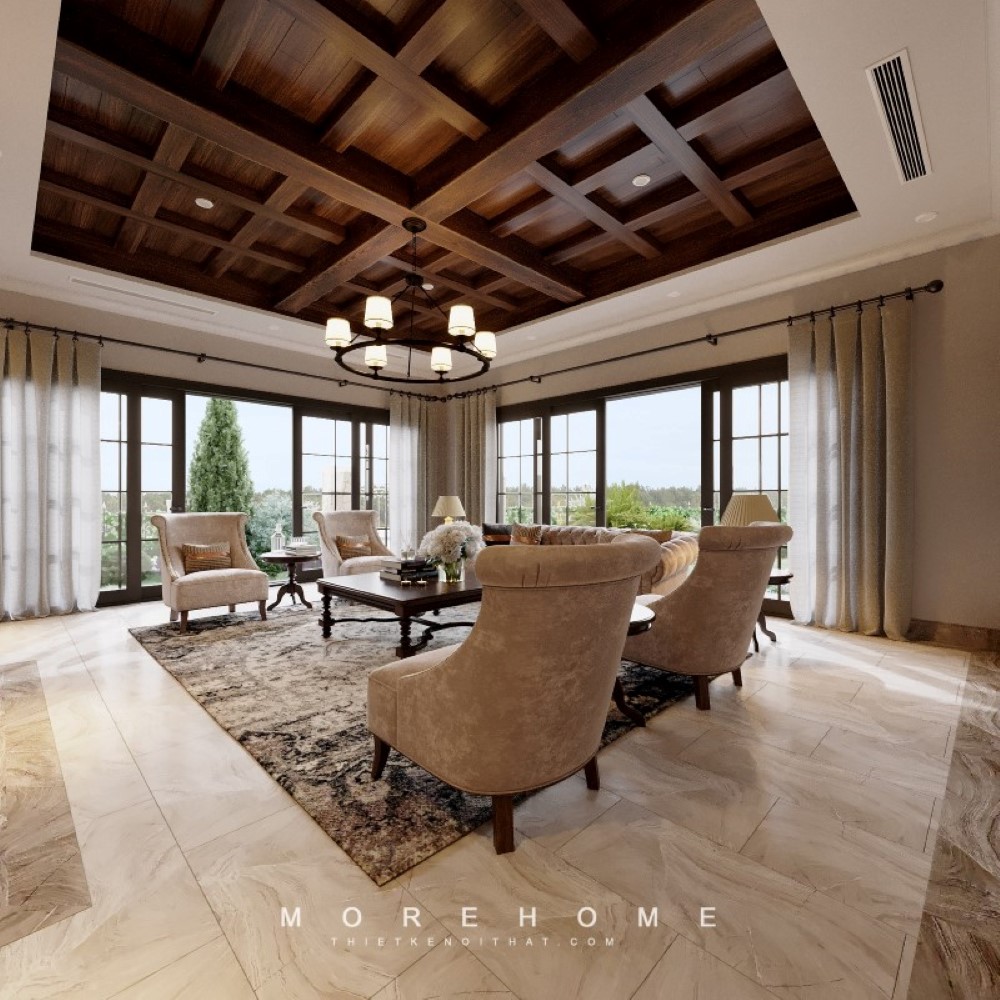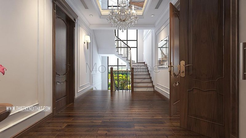 Thiết kế nội thất biệt thự gỗ óc chó tân cổ điển đẹp sang trọng đẹp cuốn hút mang đến 1 cuộc sống chất lượng vạn người mơ ước.