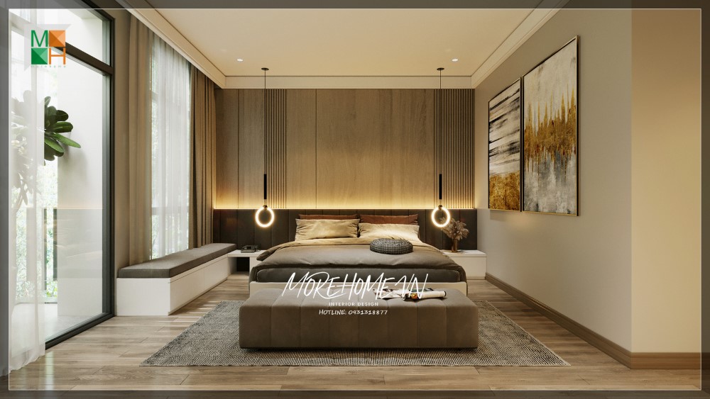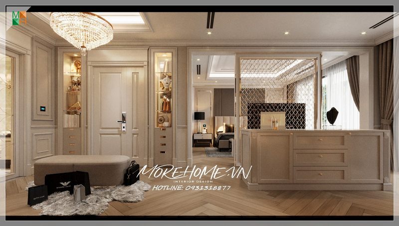 Tông màu chủ yếu được lựa chọn trong không gian phòng ngủ có phòng thay đồ đó là gam màu trung tính. Gam màu đem lại cảm giác ấm áp, dễ chịu mỗi khi bước vào phòng.