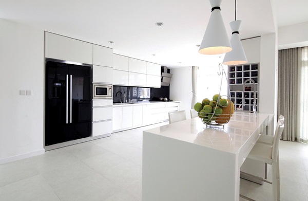 Gian bếp đơn giản, rộng rãi và hiện đại.