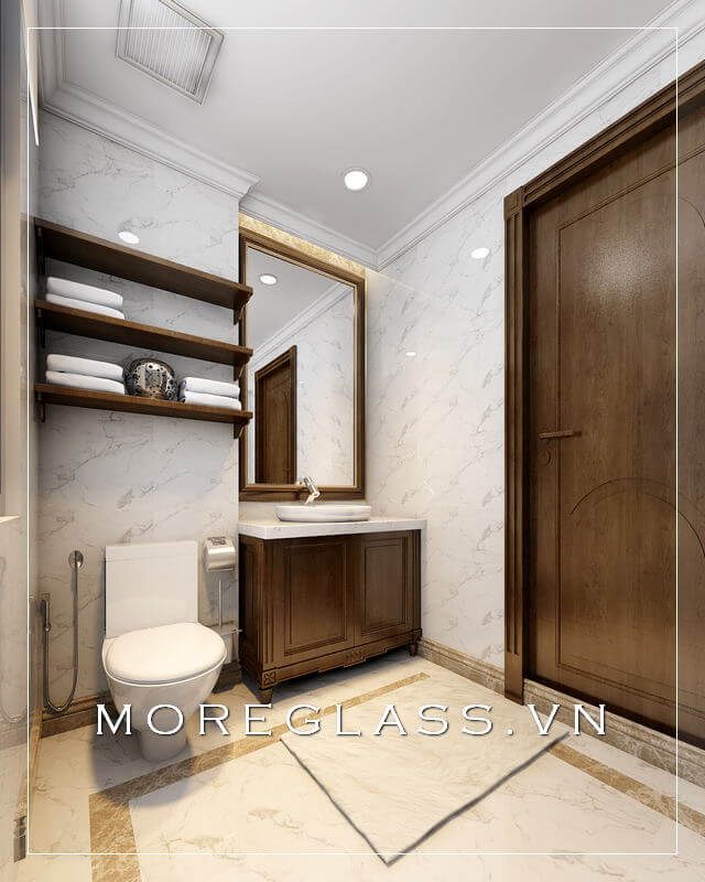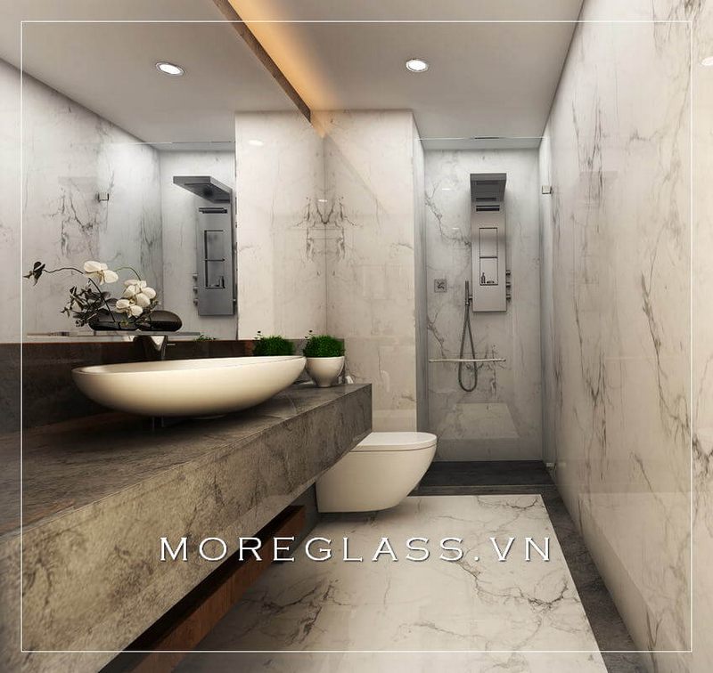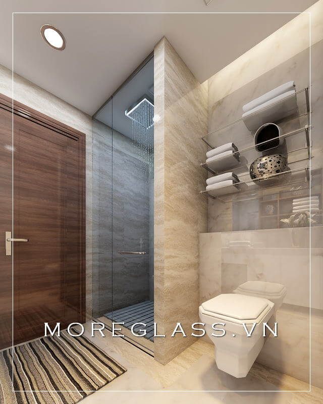 Mẫu thiết kế nhà tắm đầy đủ tiện nghi, bao gồm phòng tắm kính cường lực cao cấp, đã được hiển thị.
