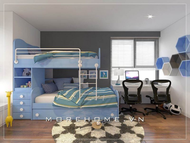 Nếu nhà bạn có từ 2 bé trai trở lên mà căn nhà lại khá bé, thì đừng nên bỏ qua mẫu thiết kế nội thất phòng ngủ này nhé